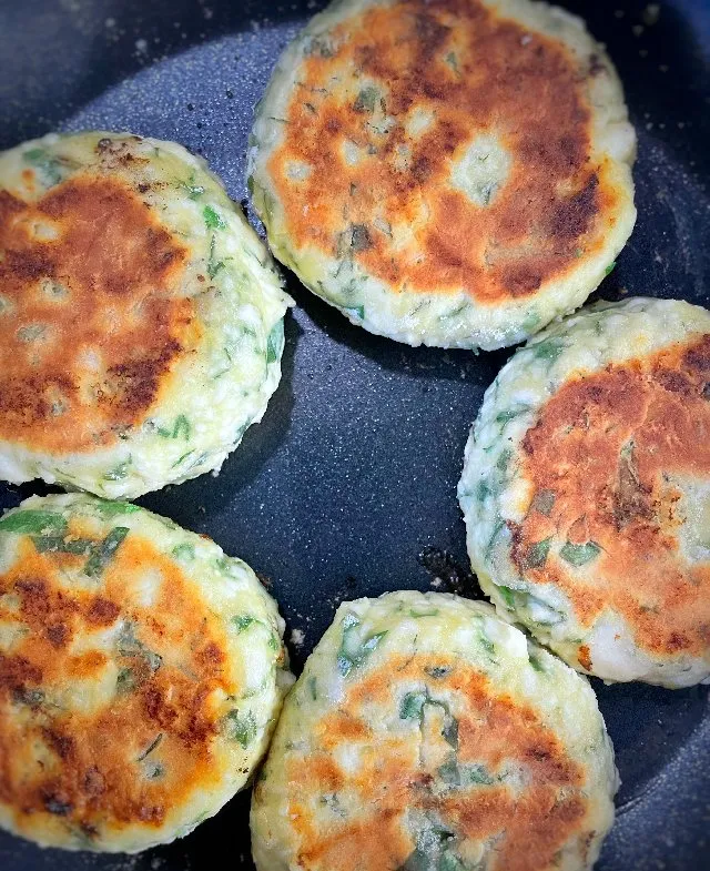 - 中火で両面がきつね色になるまで焼きます。